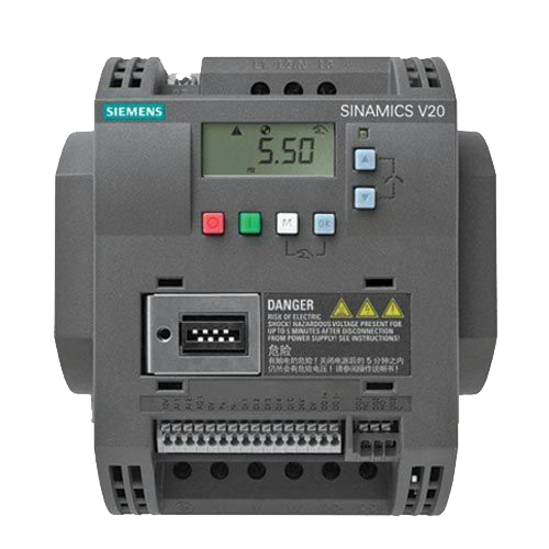 the basic performance AC drive, Siemens offers a simple and cost-effective drive solution for these types of applications. SINAMICS V20 sets itself apart with its quick commissioning times, ease of operation, robustness and cost-efficiency. With four frame sizes, SINAMICS V20 covers a power range extending from 0.12 kW up to 15 kW (1/6 hp up to 20 hp). We are Authorized Distributer for SINAMICS V20 Drives .
